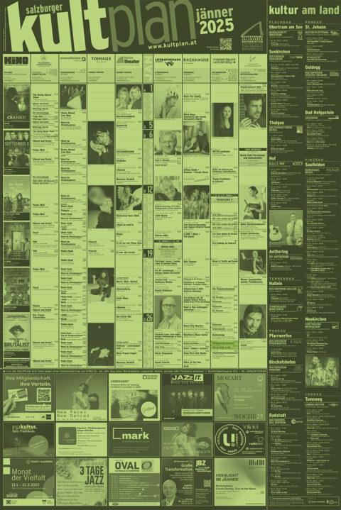 Für Mitglieder des Dachverband.Kultur sind Einträge in den Online KULTplan im Mitgliedsbeitrag inbegriffen. In der Printversion können Anzeigen geschalten werden - die Kosten sind unseren Mediendaten zu entnehmen.